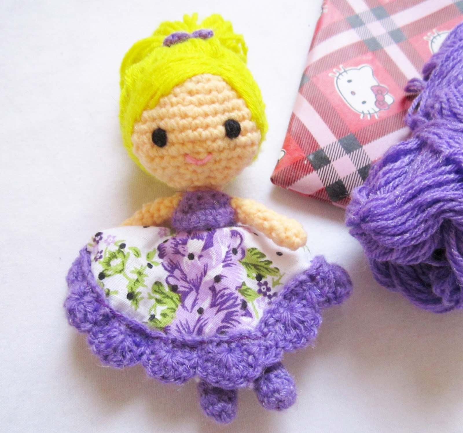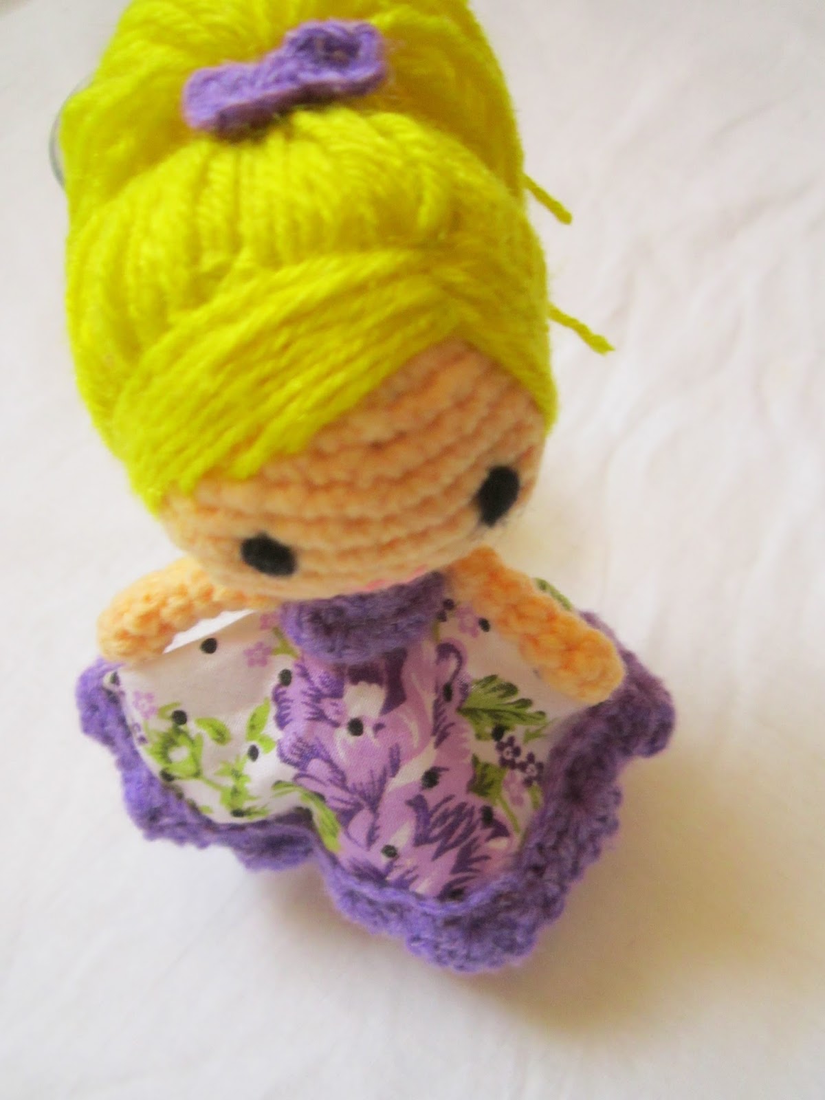 Made the dress in my favorite color and i love it! i think the hair came out well too.. guess i should improve my single crochet decrease as i couldn’t get the stitches neat..